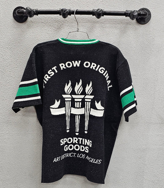 Matching Short: First Row Sporting Varsity Jacquard Knit Short, Black & Green